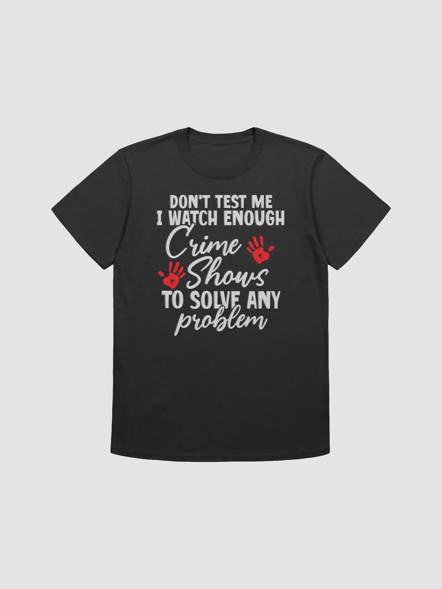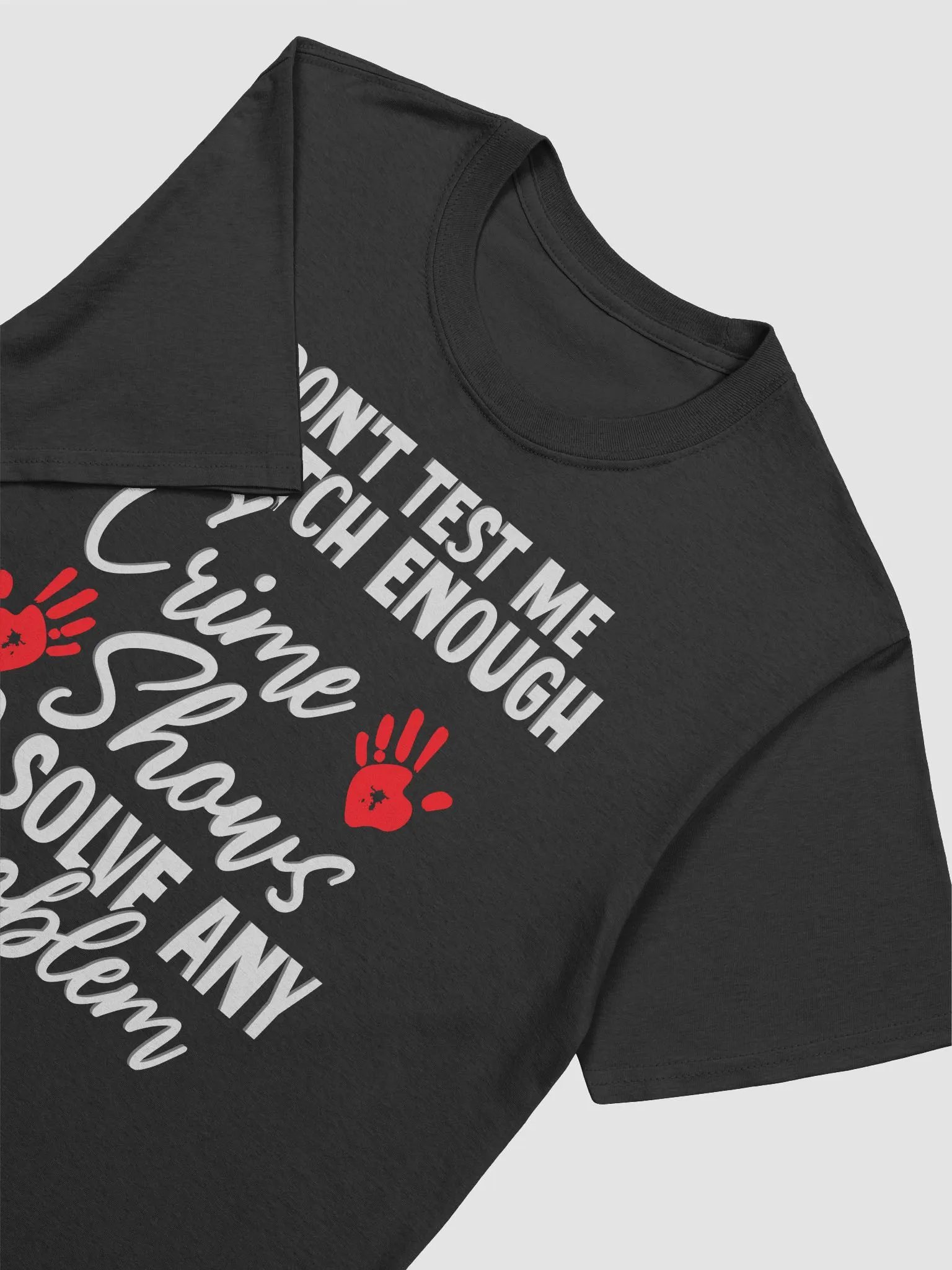 Show off your crime-solving confidence with our "Don't test me. I watch enough crime shows to solve any problem..." t-shirt. Perfect for true crime enthusiasts, this shirt combines humor and a passion for mystery. Wear it proudly and let everyone know you're ready to crack any case with FTO True Crime.